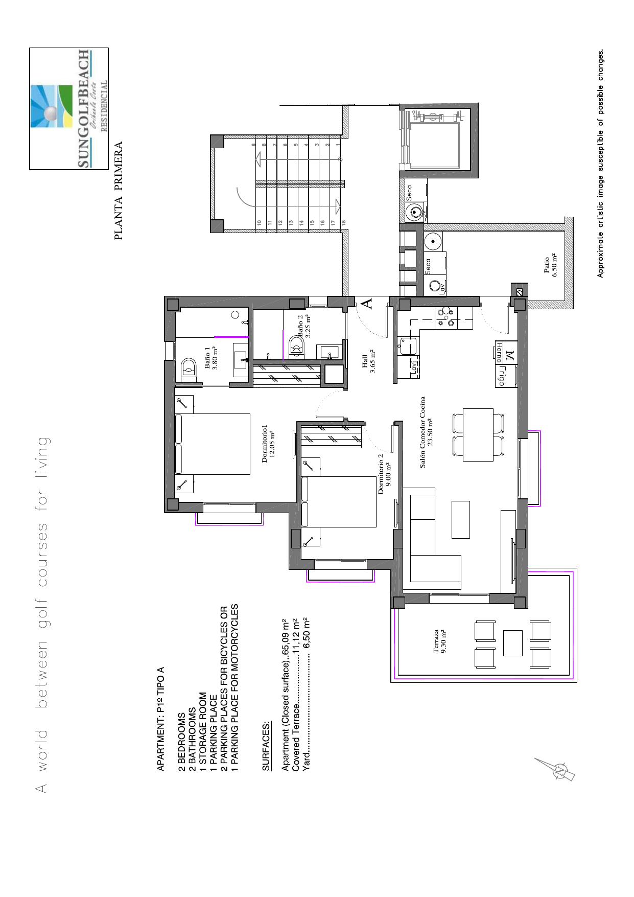 SunGolf Beach Phase IV is a boutique block of 8 apartments in Dehesa de Campoamor, Orihuela Costa. Campoamor and Villamartín golf courses are just 2 km away — roughly 5–6 minutes by car. Surrounded by four championship courses and minutes from golden beaches, the location genuinely delivers on the name.